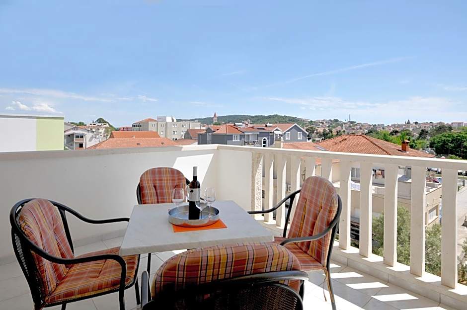 This studio apartment is on the 1st floor on the front side of the hotel, with access to a balcony. Comes with a sofa bed, table, chairs and kitchen.